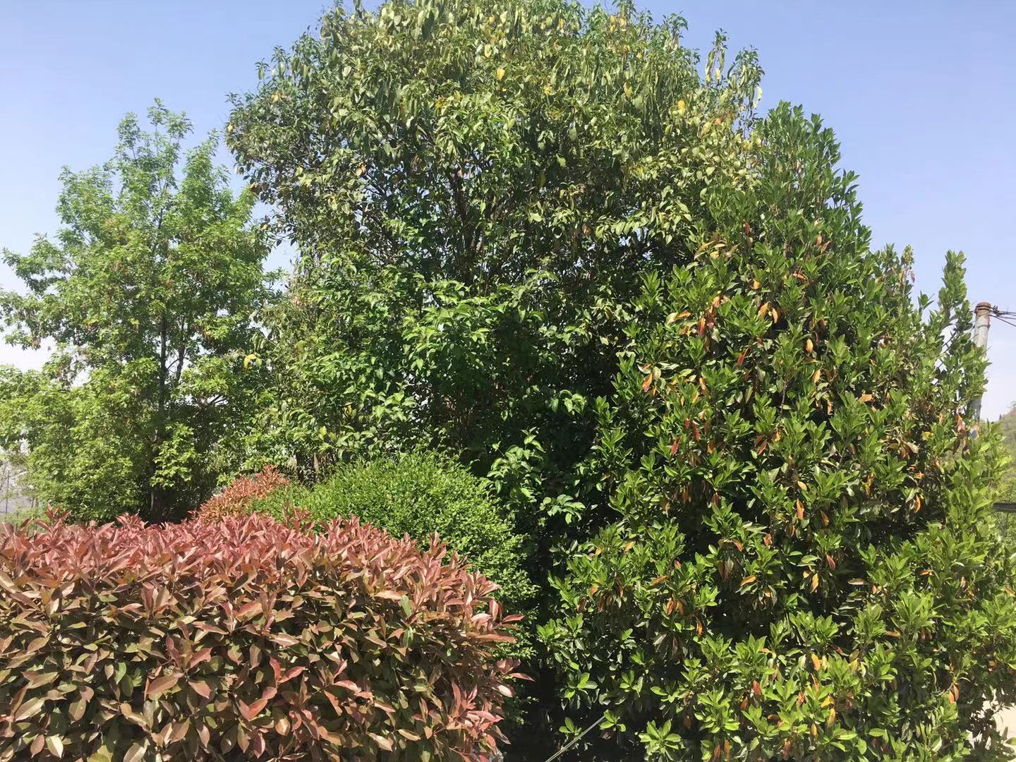 山腳下人工種植的冬青樹,整整齊齊,冬青樹后面就是野生的草木,有構(gòu)樹,槐樹,榆樹...