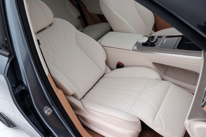 空間上,前排女王副駕依然具備,電動腿托和按摩模式把舒適度又加高了一個層級,此外,包括香氛、律動氛圍燈這些配置,也都是能形成高品質的座艙享受。