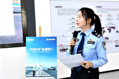 (直屬高警四支隊十堰大隊民警俞遠洋向大家介紹道路安全形勢)