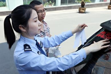 (交警和車主共同張貼及風公約車貼,加入愛心車主隊伍)