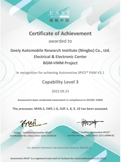 本次是繼2022年9月吉利汽車首次獲得Automotive SPICE-CL3認(rèn)證,開啟軟件質(zhì)量保障體系新篇章后,再次獲得權(quán)威機(jī)構(gòu)認(rèn)證。吉利汽車研究院也成為全球首個通過軟件質(zhì)量體系"3A"能力認(rèn)證(Automotive SPICE-CL3/ASQMS/AUTOSQS)的企業(yè),這份"3A"認(rèn)證,標(biāo)志著吉利率先推動多維度國際標(biāo)準(zhǔn)的融合,突破了單一認(rèn)證的局限。