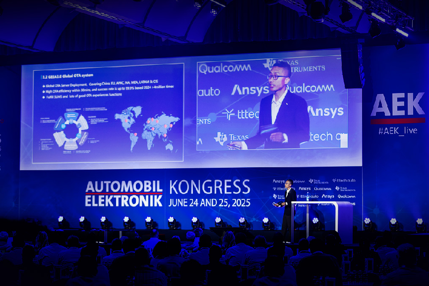 【路德維希堡,德國,2025年6月24日】,第29屆歐洲汽車電子大會(huì)(Automobil-Elektronik Kongress)于德國路德維希堡開幕。AEK聚集全球頭部OEM/Tier1/芯片巨頭/軟件商高層技術(shù)戰(zhàn)略交流,是歐美車企必赴的深度論壇。吉利汽車作為中國車企唯一受邀代表,研究院電子軟件中心副主任韓勇在大會(huì)發(fā)表題為《Geely EEA Development Reflections》的主題演講,系統(tǒng)闡釋吉利電子電氣架構(gòu)技術(shù)發(fā)展、全球化標(biāo)準(zhǔn)體系及應(yīng)用車型,展現(xiàn)中國汽車科技在全球智能化浪潮中的引領(lǐng)地位。