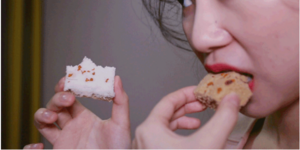 每只手各拿一個米糕,都深深地咬上一口,好吃到每種口味都不能放過!