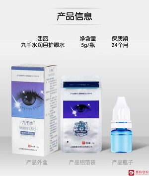 【品名】九千水護眼水【規格】5g/瓶【款式】屈焦護眼,疲勞舒緩,衰退保護【有效成分】達古冰川小分子團水等【適用】男女通用、長期使用電腦。使用前請仔細觀看說明,如有不適請立即停用生產日期:2020年8月后保質期:24個月