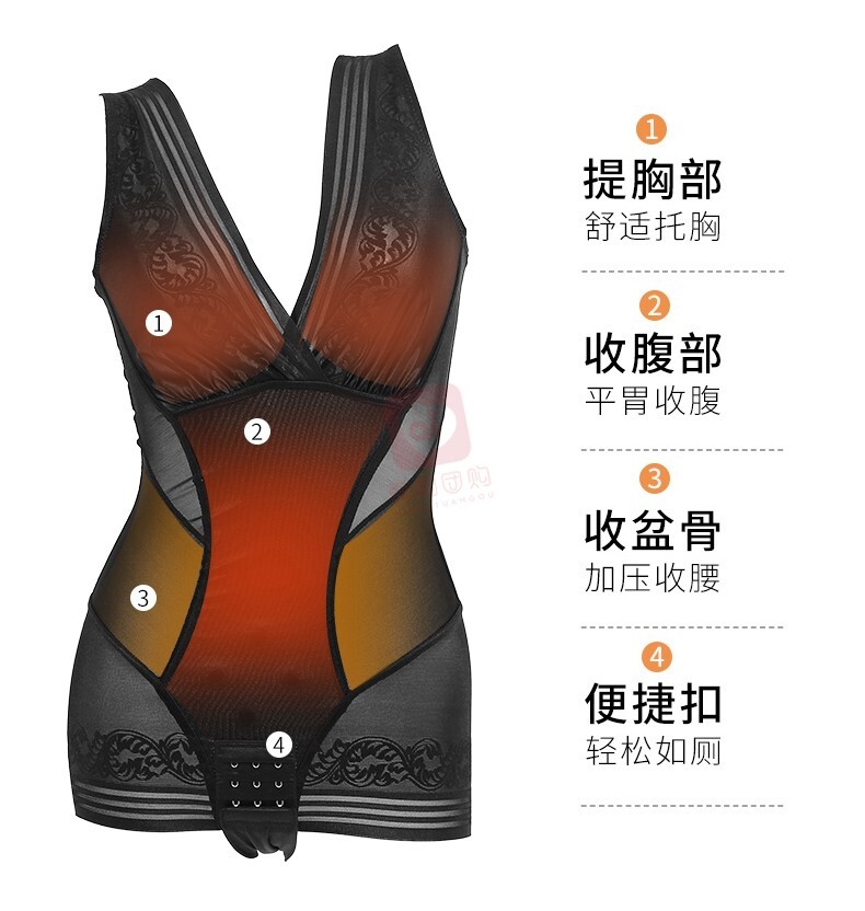 性感深V,蕾絲綢面:前后深V設計,將女性身材魅力盡數展現,加之蕾絲綢面,將所有性感元素融合于一件塑身衣,若隱若現的朦朧美由此產生。體型偏胖人群、產后媽媽、身材走樣人群均可穿出迷人曲線,恢復女人的自信。